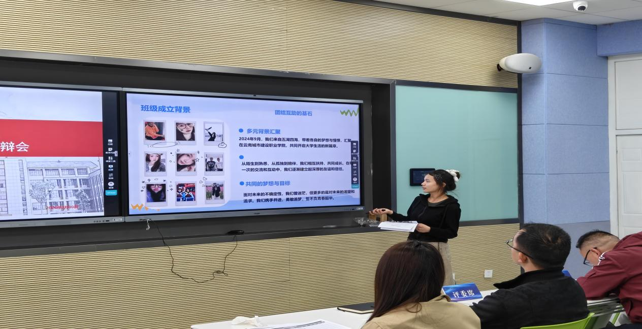 答辩现场,各班级围绕思想引领、制度建设、学风打造、文体活动、志愿服务、荣誉成果等方面,通过PPT生动展示班级建设亮点与特色,充分展现了团结奋进、勤学笃行、积极向上的精神风貌。无论是严谨规范的班级管理、浓厚扎实的学习氛围,还是丰富多彩的实践活动、硕果累累的竞赛荣誉,都彰显了各班在班级文化与集体建设中的扎实付出。评审团严格对照评选标准,客观公正开展评议。